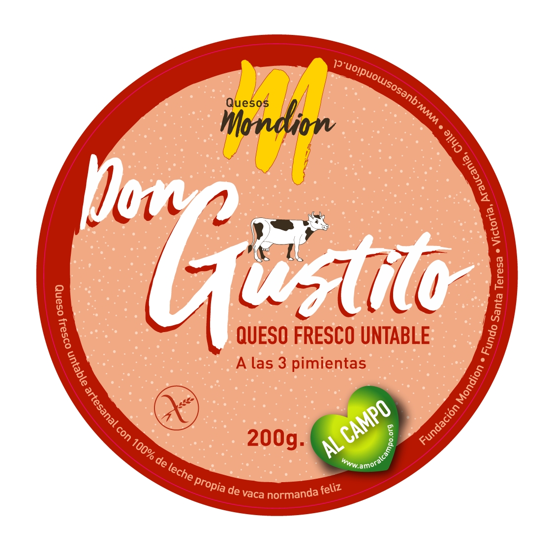 Don Gustito es un queso fresco con una textura untuosa y cremosa, obtenida con pura leche y fermentos seleccionados, sin ningún ingrediente adicional, excepto una mezcla de finas especies ahumadas, de 3 pimientas.
